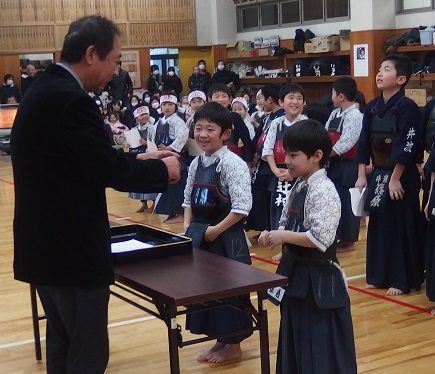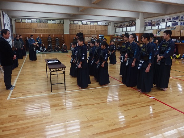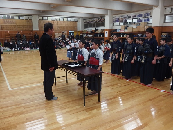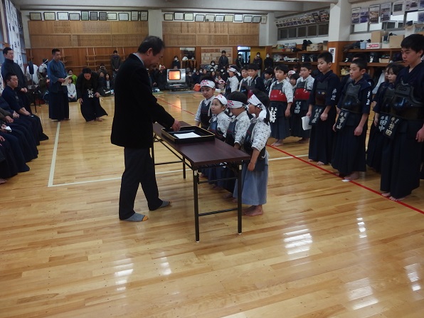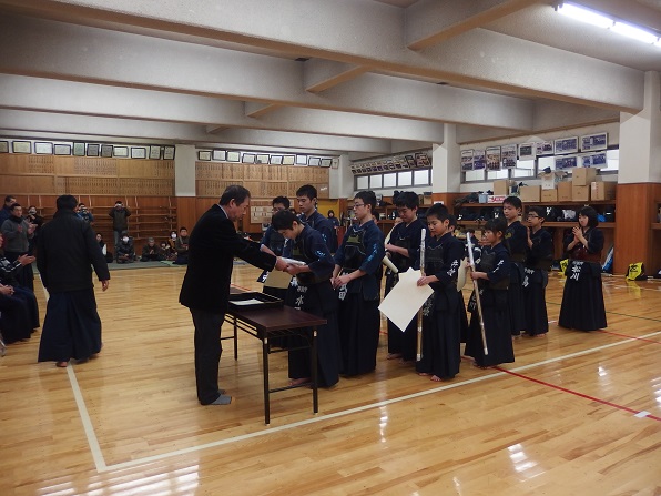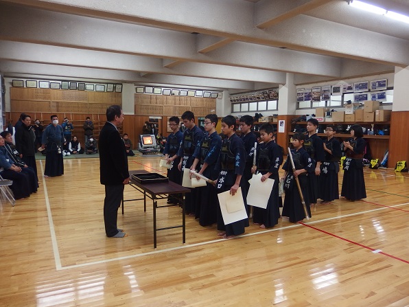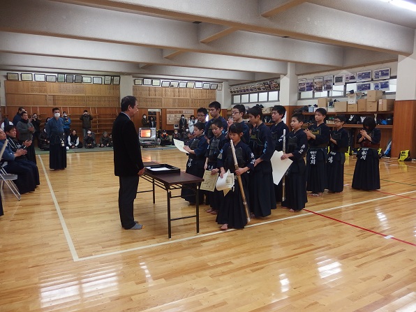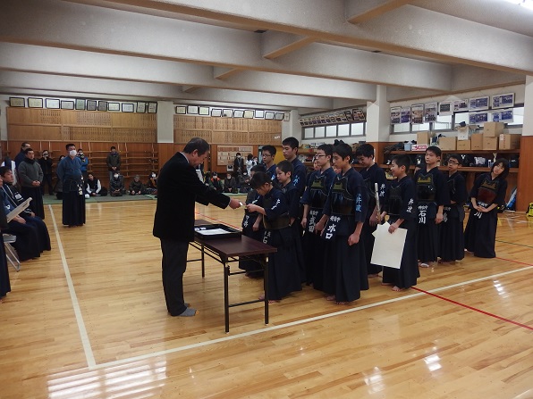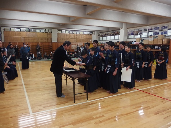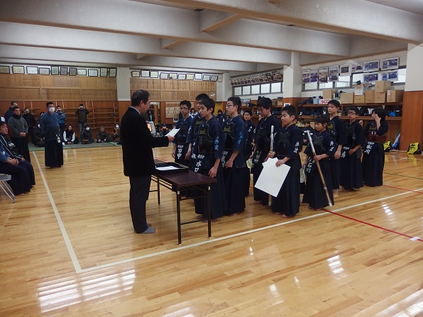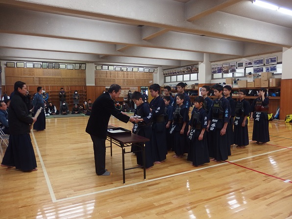 ![]() 中学生の部の表彰:優勝、水口脩弥 |