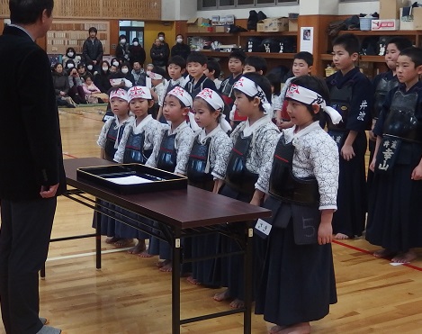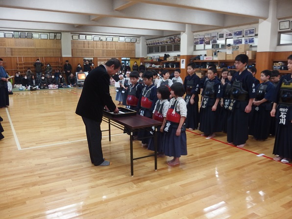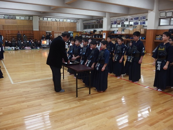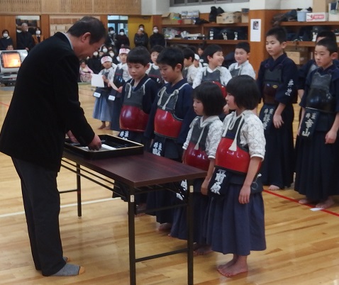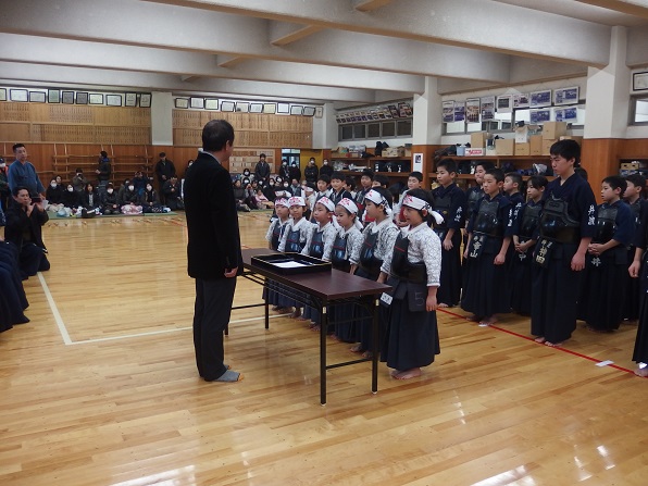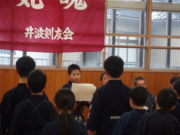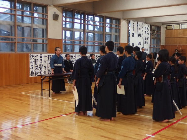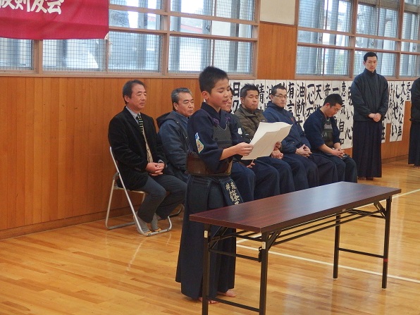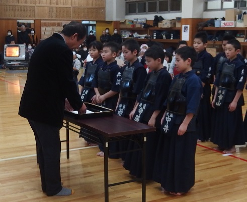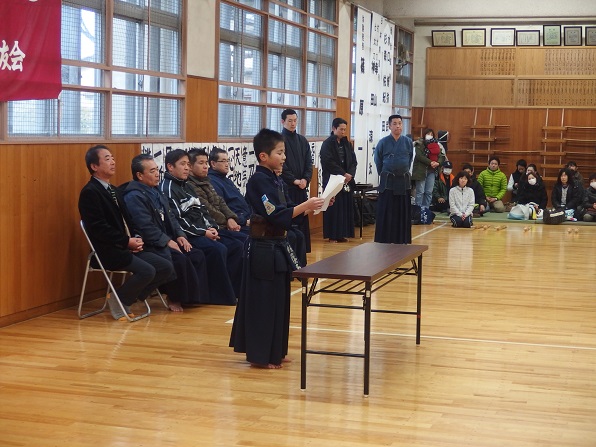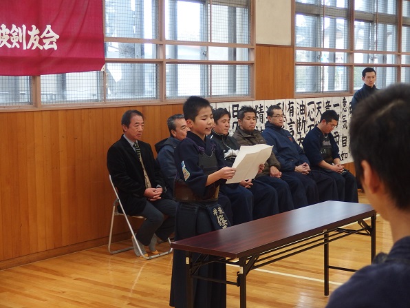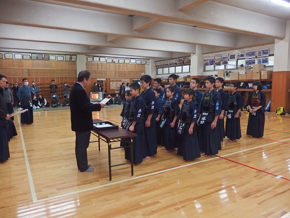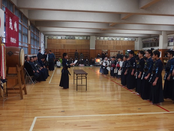 ![]() 閉会式の挨拶は、井波剣友会の神田副会長 |