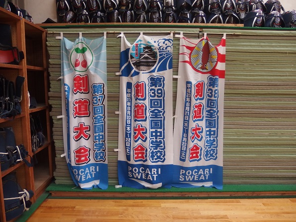 ![]() 山形全中、富山全中、熊本全中の出場記念の昇り旗・・・大会本部にお願いして頂いたもの |