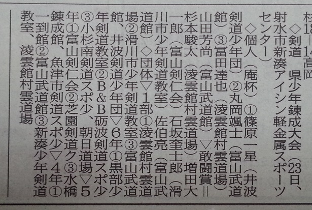 第39回富山県少年剣道錬成大会 兼 第16回庵杯争奪剣道個人優勝大会