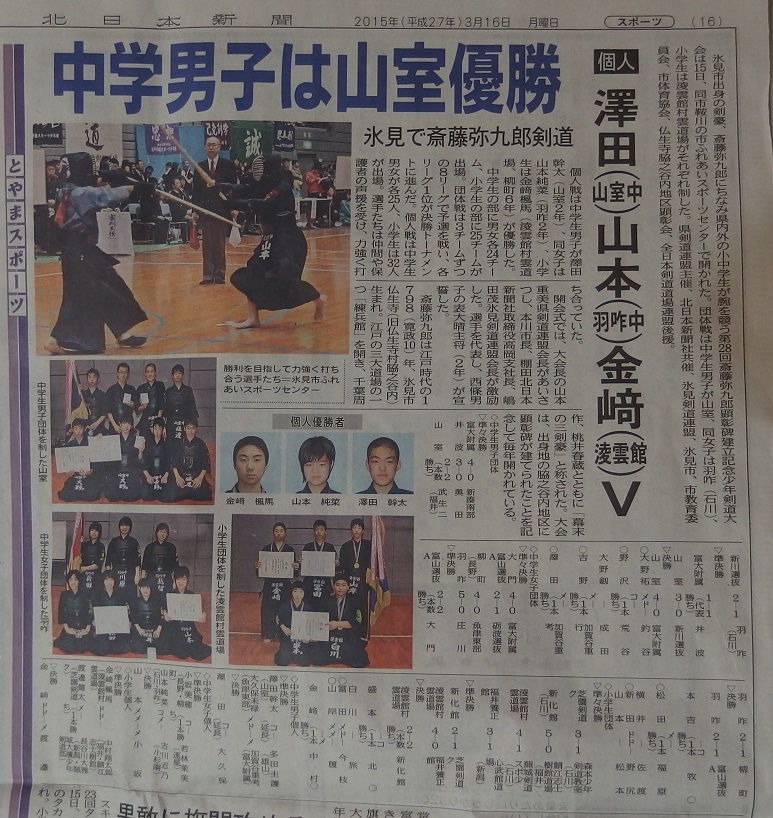 主催した北日本新聞の大会記録記事(平成27年3月16日)