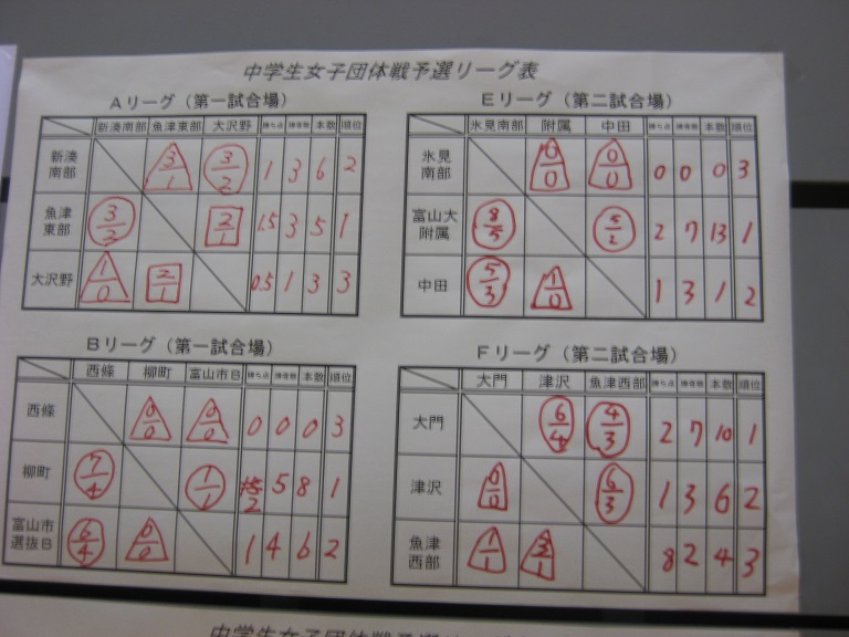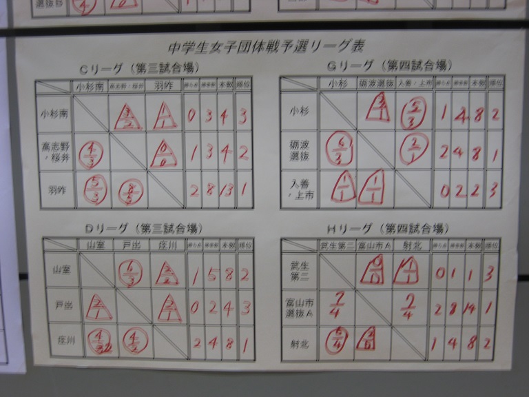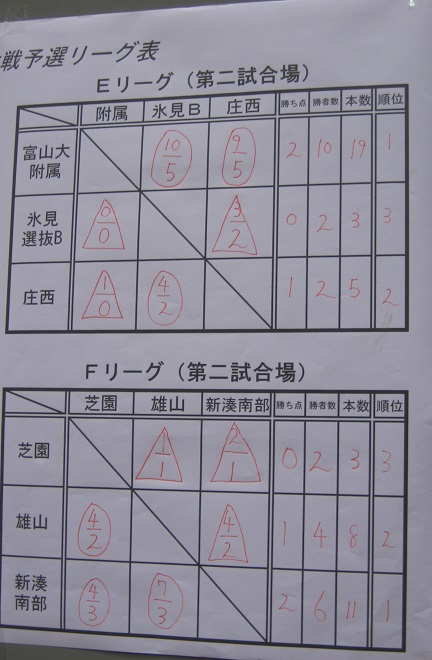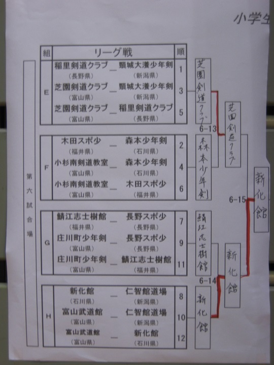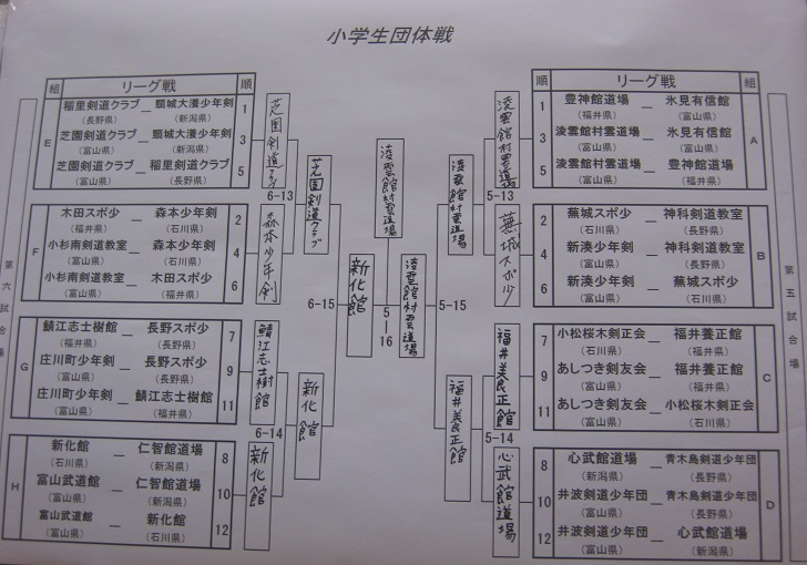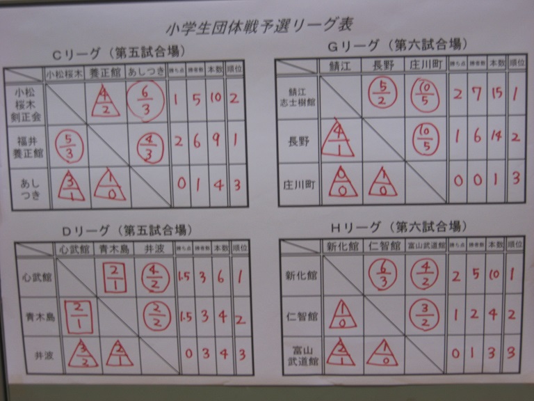 小学生 井波(篠原・石川・幸山・津崎・神田)・・・・予選リーグ3位で、決勝トーナメント進出できず