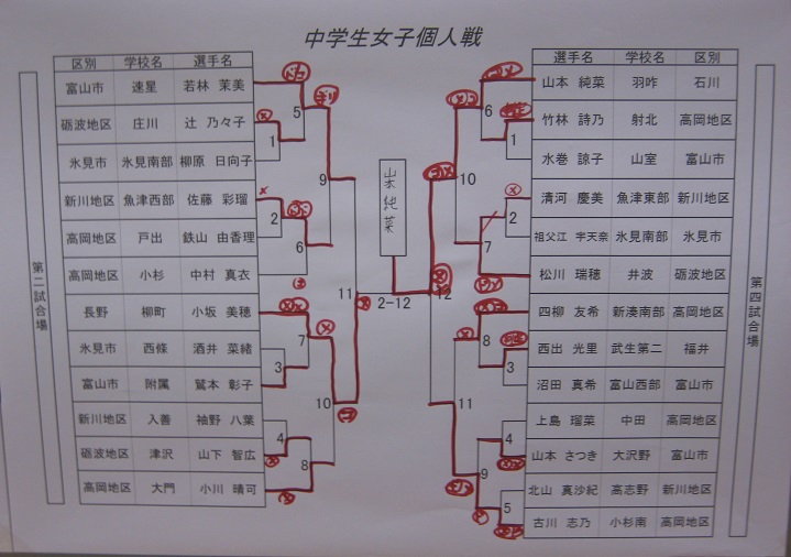 女子 松川絢菜 3回戦進出(1勝:ベスト8)・・・準々決勝で、優勝した山本純菜(羽咋中)に負け