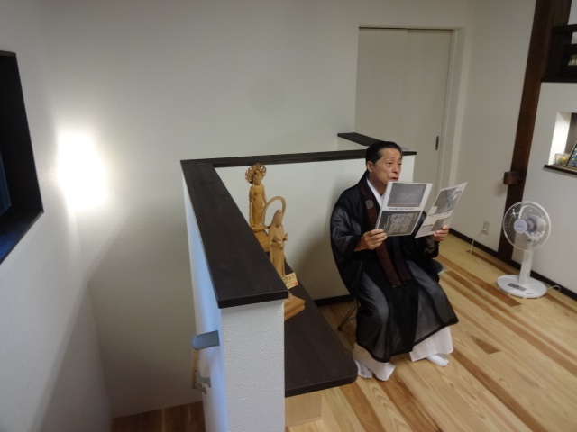 ![]() 例会の際にあげるお経は「嘆仏偈」です。「勧行集」をみて、唱和します。 |