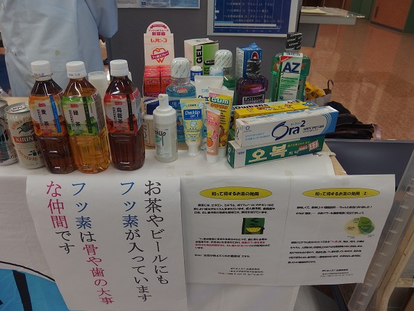 | フッ化物配合歯磨剤メーカーさんには、サンプルの提供を有難うございました。また、フッ化物応用のチラシやパンフレット、また、口腔ケアグッズや知覚過敏予防のサンプルの提供も頂きました。ここに合わせて、感謝申し上げます。 | |