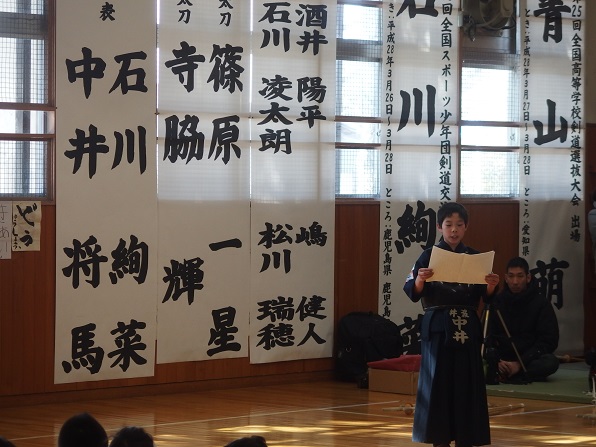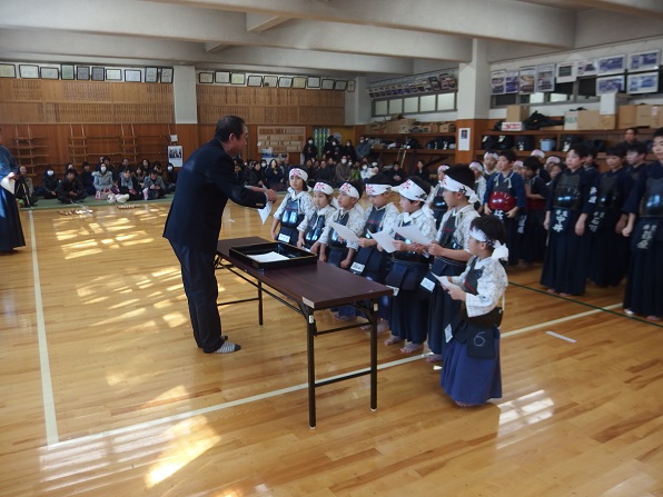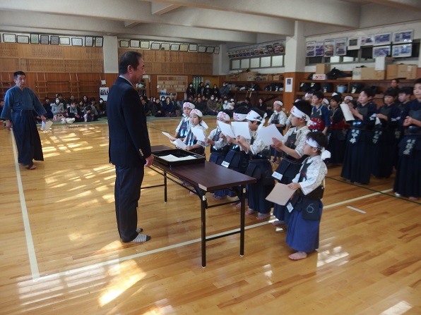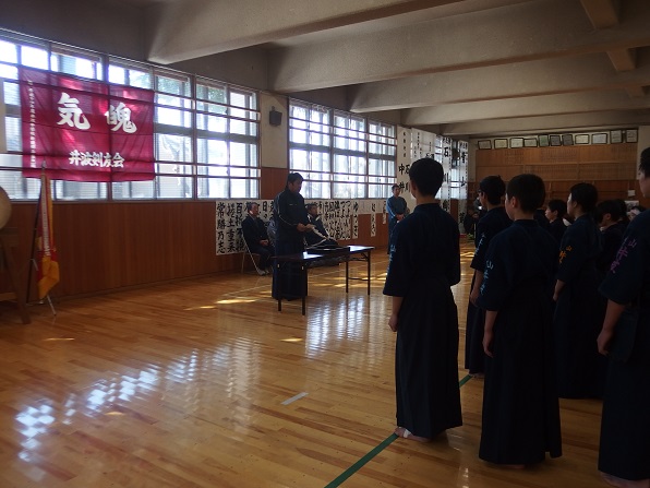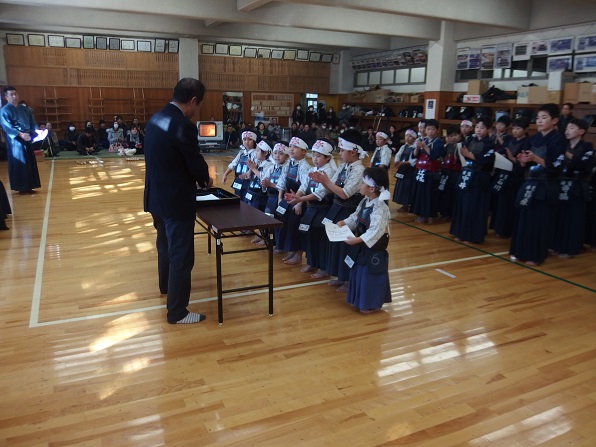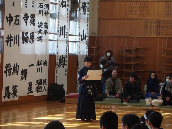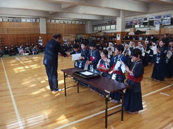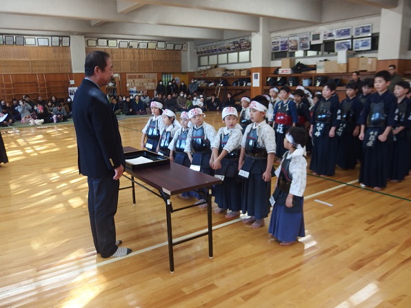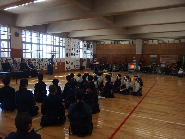 平成27年度 井波剣道大会(主催:井波剣友会、後援:井波地域体育協会、協賛:北日本新聞社) 平成28年(2016年)2月7日(南砺市井波社会体育館武道場) *大会成績 小学生1部(A班) 篠原一星 優勝、中井将馬 次勝、寺脇輝・石川絢菜 3位 2部(B班) 高橋奏乃 優勝、野村立心 2位 中学生 石川凌太朗 優勝、松川瑞穂 次勝、嶋健人・神田涼太 3位 開会式・級位認定状授与・剣道形・居合型披露 写真集