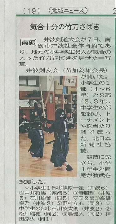 平成27年度 井波剣道大会(主催:井波剣友会、後援:井波地域体育協会、協賛:北日本新聞社)