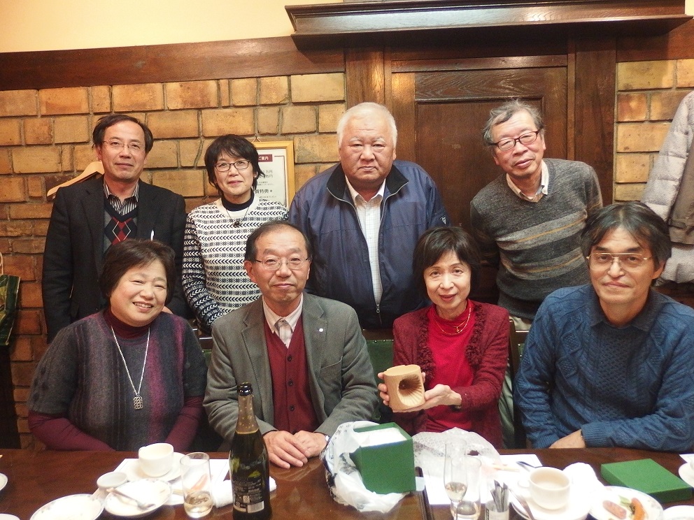 2016年(平成28年)12月17日 ミニ同窓会(忘年会) 表参道 NIKKA−WHISKEYビル「うすけぼー」南青山店 後列(左より):中田節也、加藤(長原)啓子、新島(水口)立、吉崎四平 前列(左より):上田(柴田)寿美子、小生、大滝(服部)尚子、高瀬満
