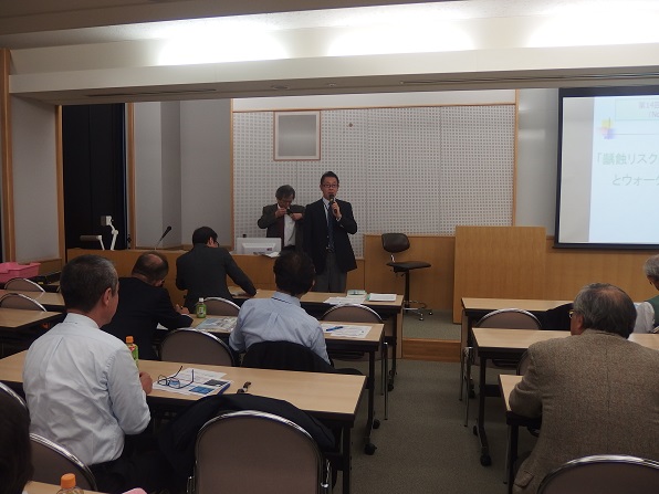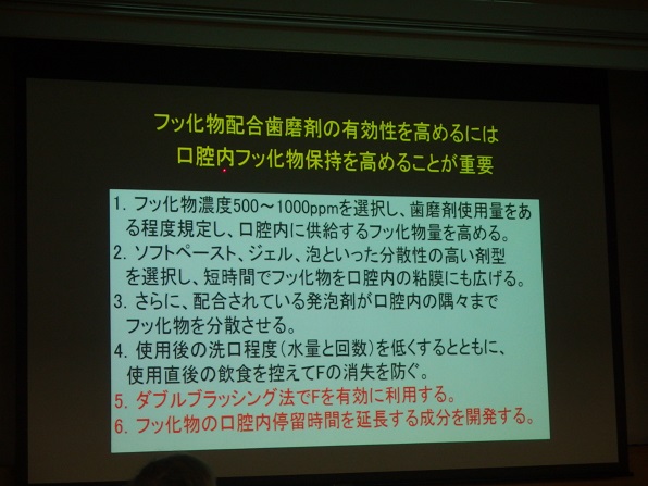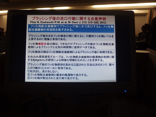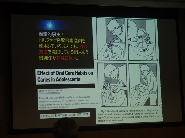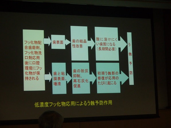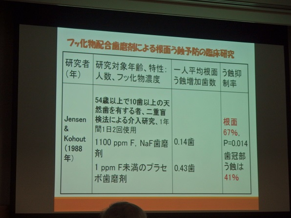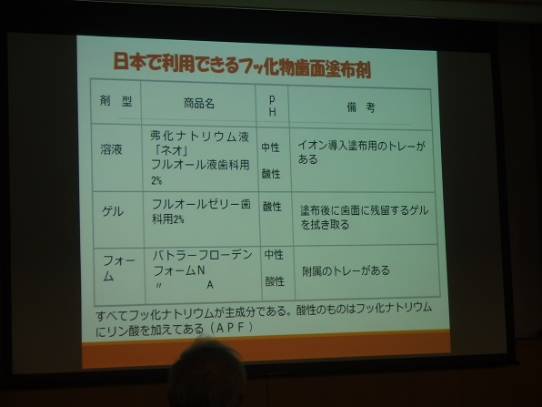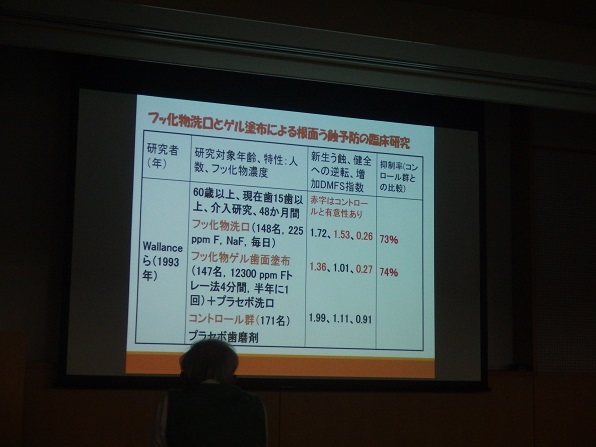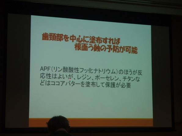 NPO法人日本フッ化物むし歯予防協会(NPO日F) 総会・研修会・・・講演写真集 2016年11月6日(日) 鶴見大学会館 午後:研修会@「根面う蝕とフッ化物応用」 神奈川歯科大学口腔保健学講座 荒川浩久教授・・・スライドPDFファイル(配布資料) 休憩時間あり 川越元久先生(川崎市)より、1月の研修会のその後の経過報告がありました。
