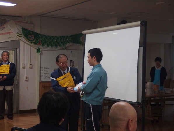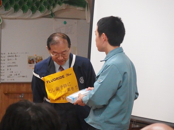3.ロータリークラブ会長から、歯ブラシプレゼント