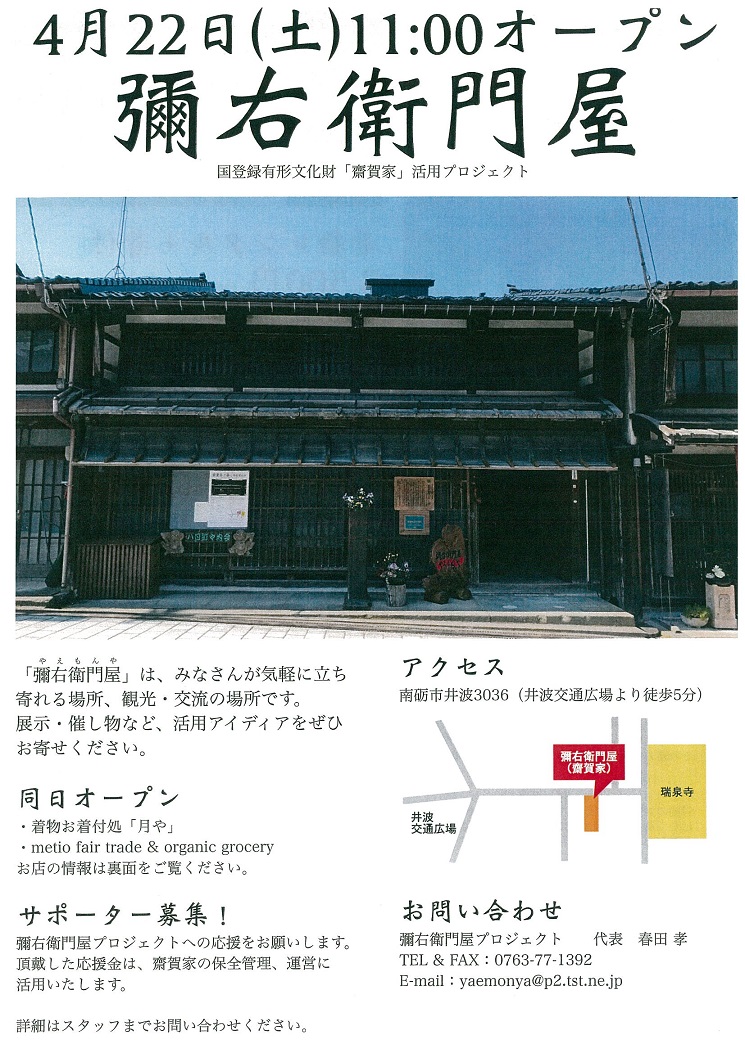 彌右衛門屋プロジェクトサポーター会員入会募集中