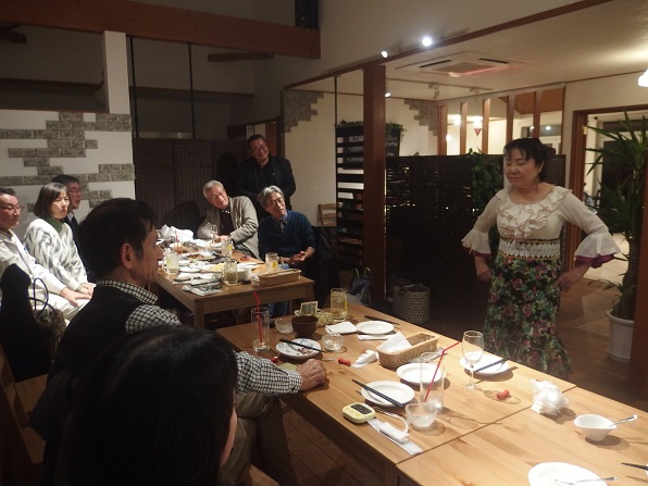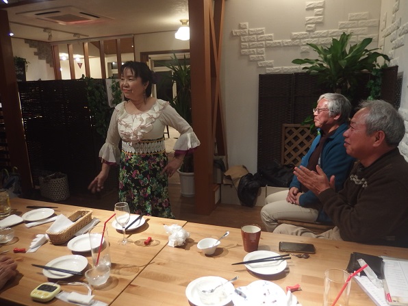 2018年(平成30年)12月16日 福野「自由ELE(ジェエル)」 参加者:女性軍:松井・西田(早川)・加藤(渡辺)、 病気回復組:山畔・横井・山本 初参加:山下 男性軍:中山・磯辺・下田・田中・高瀬・山田・・・・計13名 写真集 山畔君と横井君と小生の快気祝いを兼ねて、松井美智子フラミンゴショータイムです