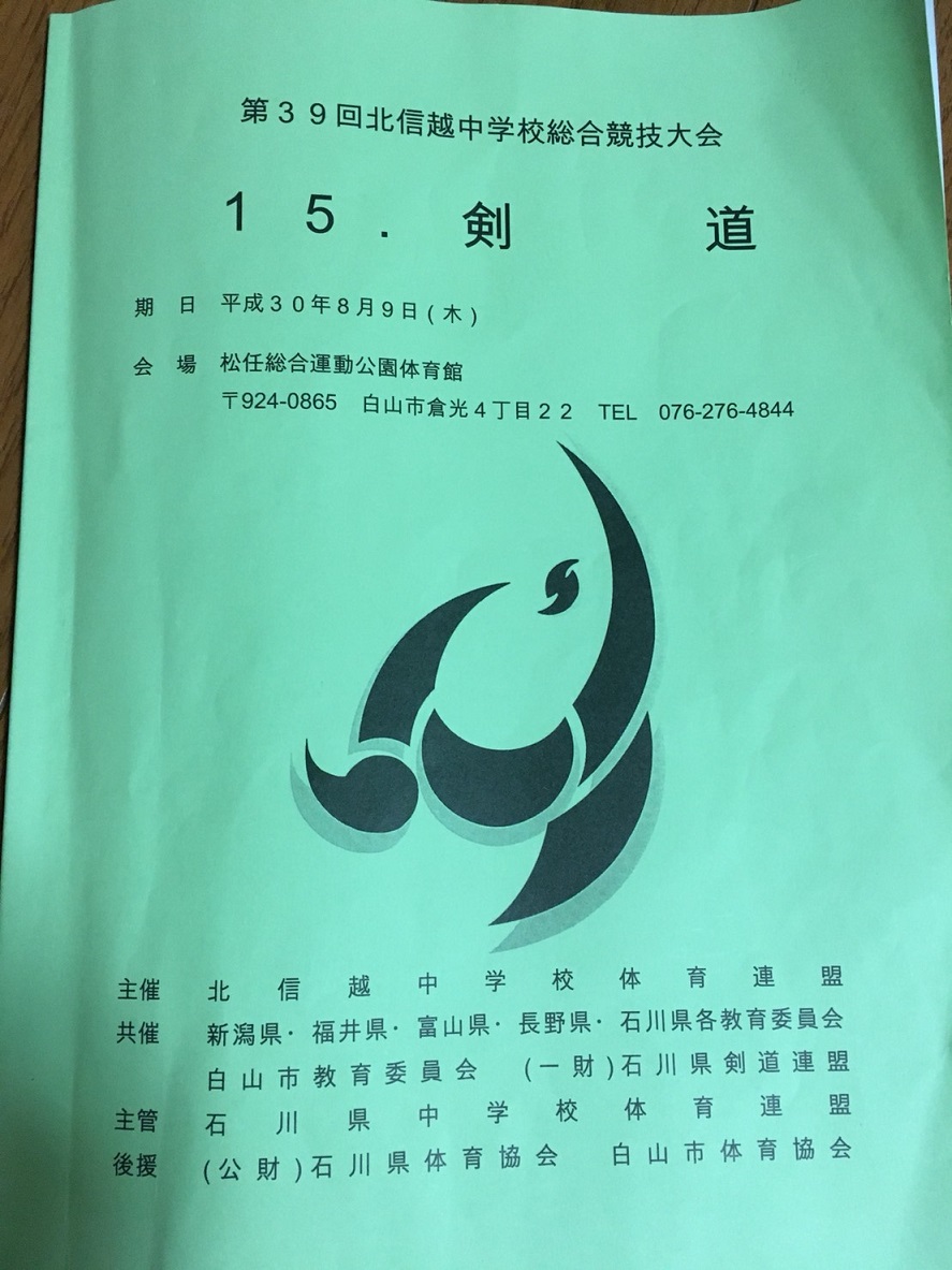第39回北信越中学校総合体育大会剣道競技 2018年(平成30年)8月9日 白山市松任総合運動公園体育館