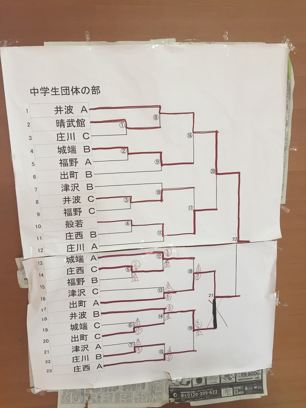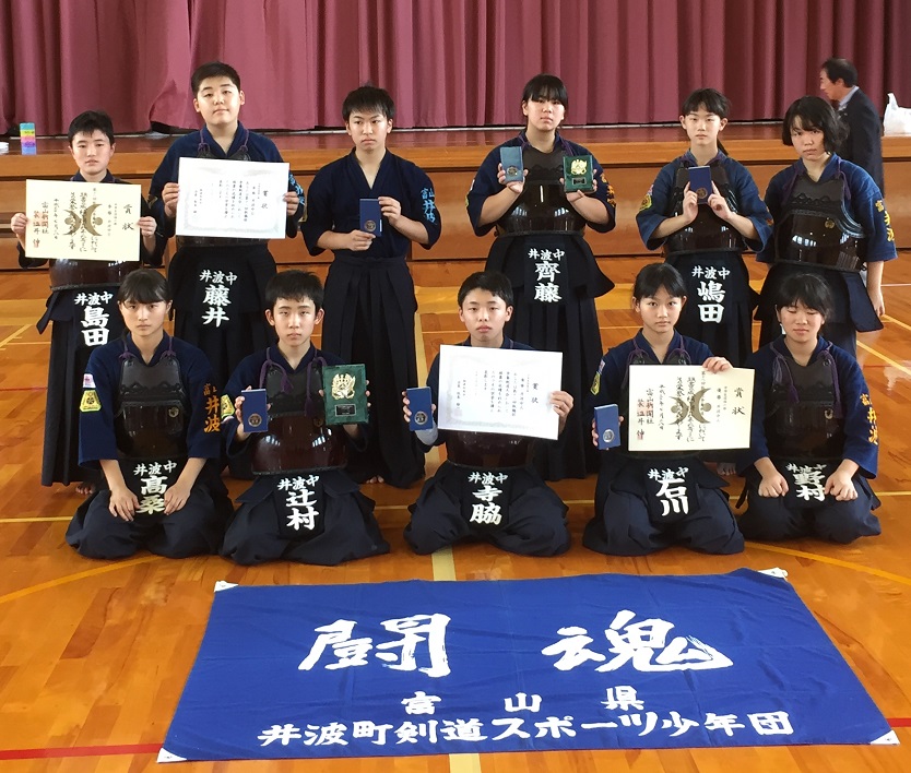 中学生団体の部 井波A(辻村・石川・寺脇) 優勝、 井波B(嶋田・齊藤・松川) 3位、 井波C(島田・木田・藤井) ベスト8
