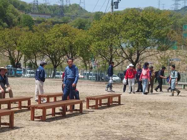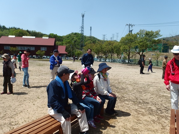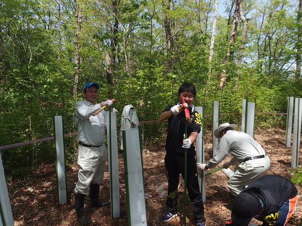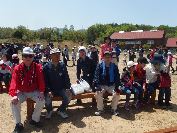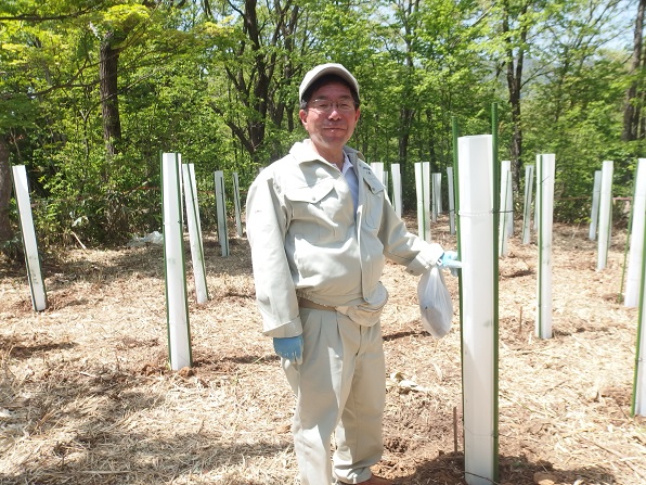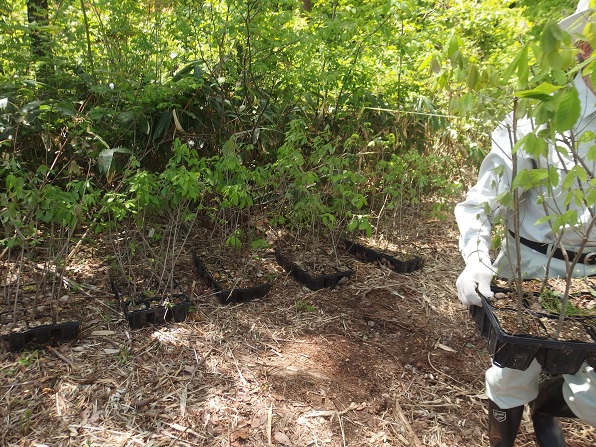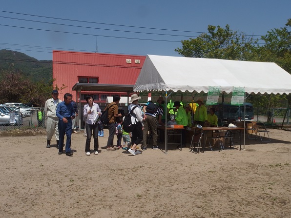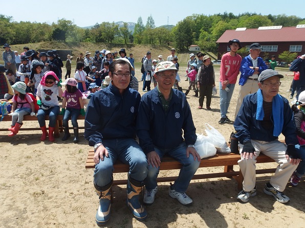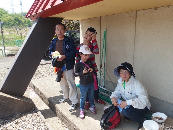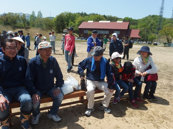植樹の後は、「きのこ汁」と「焼き鳥」を頂いて、持参のおにぎりに添えました。