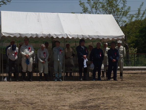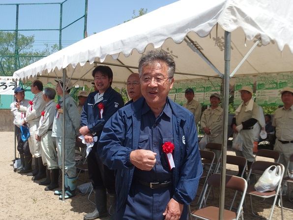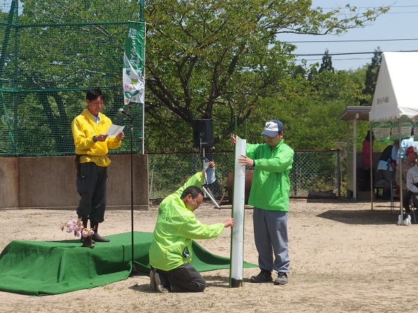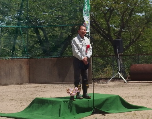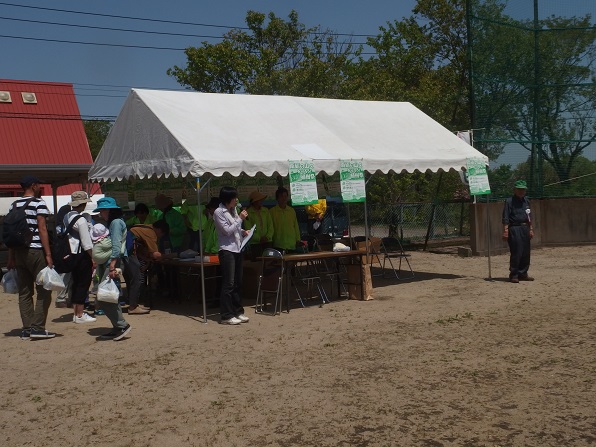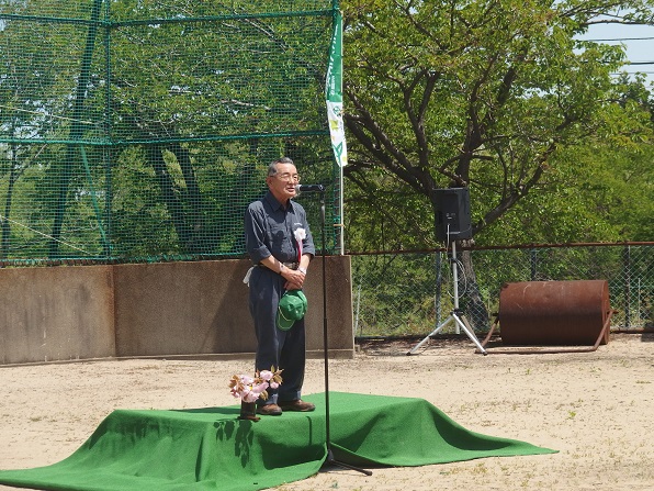 開会式、東となみロータリークラブ齋藤彰副会長が来賓席へ(河合会長は、このイベントの主催:事務局です)