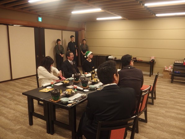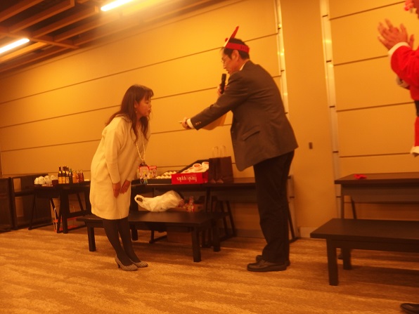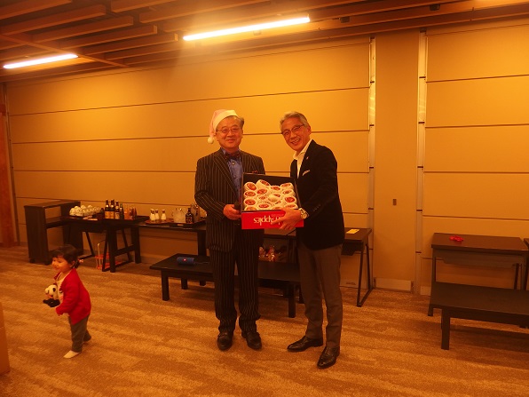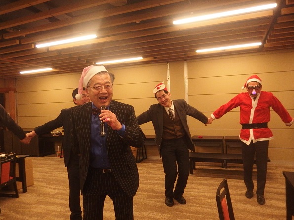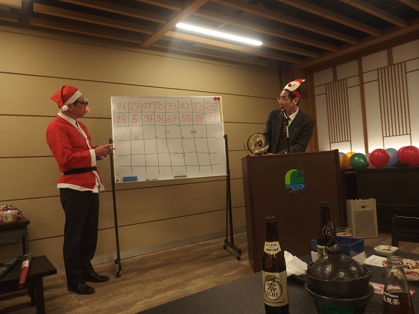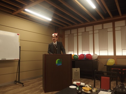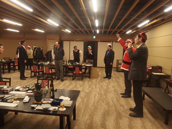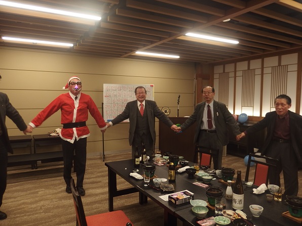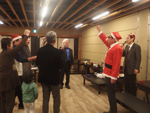 SAAの長田会員のサンタさん 坂井彦就会長の挨拶と乾杯