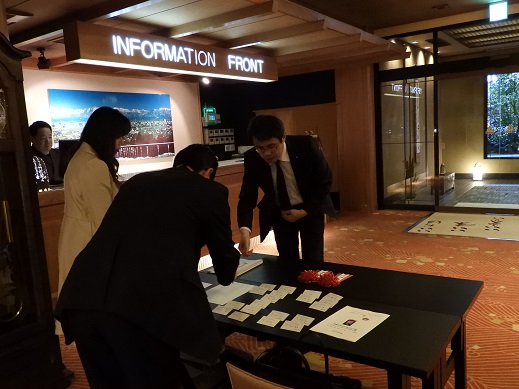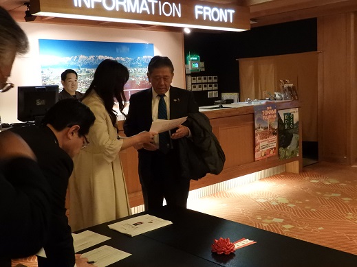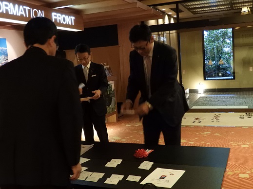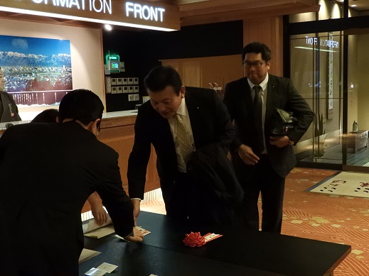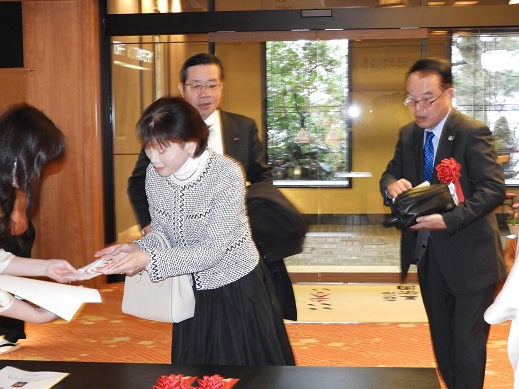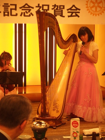 東となみロータリークラブ創立40周年記念祝賀会次第・・・当日プログラム(来賓名簿) 祝賀会 18:00 (司 会 桧原やよい) 1.点 鐘 会 長 坂井 彦就 2.国歌「君が代」斉唱 3.ロータリーソング「奉仕の理想」 4.物故会員追悼(黙祷) 5.実行委員長挨拶 実行委員長 小西 勝 6.歓迎の挨拶 会 長 坂井 彦就 7.永年在籍会員記念品贈呈 会 長 坂井 彦就 8.来賓紹介 9.祝辞・乾杯 国際ロータリー第2610地区ガバナー 若林 啓介 様 ・・・・・開宴・・・・(アトラクション:ハープ演奏)・・・・ 10.万歳三唱 国際ロータリー第2610地区パストガバナー 津田 達雄 様 11.「手に手 つないで」 12. 閉会の辞 副 会 長 齋藤 彰 13.閉会点鐘 会 長 坂井 彦就