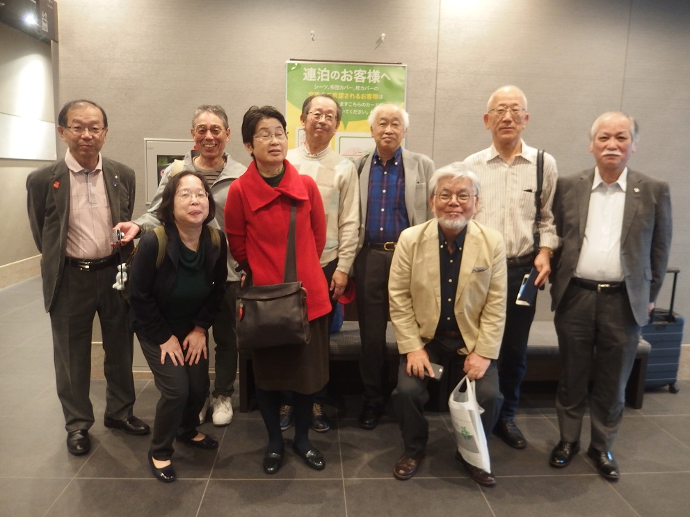 2019年11月4日朝、宿泊先の「ドーミンイン高知」にて、早帰りの人たちが抜けた後で、「昨日の晩、集合写真、忘れたね」と(笑)