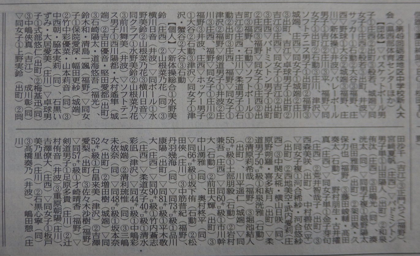 女子団体 井波中(高橋・谷口・叶山・野原・山本) 予選リーグ2位で、決勝トーナメント準決勝敗退、3位決定戦で勝ち、3位入賞