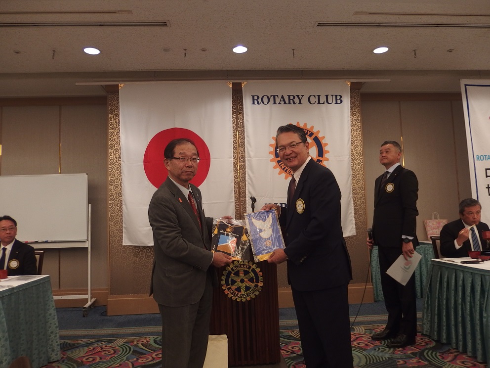 鶴会長さんと、バナー交換をしました。日本で7番目に設立された伝統あるクラブです(会員数130名あまり)