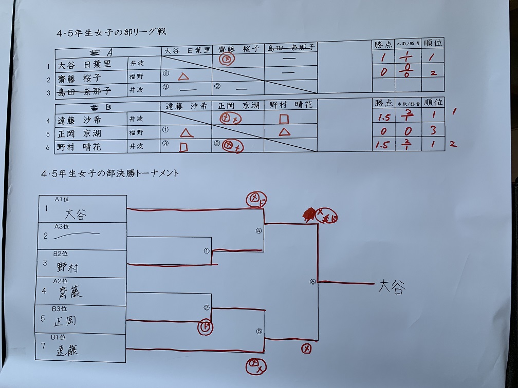 小学4-5年女子 大谷日葉里 優勝、遠藤沙希 次勝、野村晴花 3位