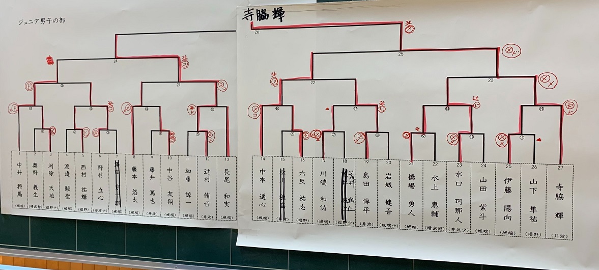 ジュニア男子 寺脇輝 優勝、辻村侑音 次勝、中井将馬(城端) 3位、野村立心・島田惇平・水口珂那人 ベスト8