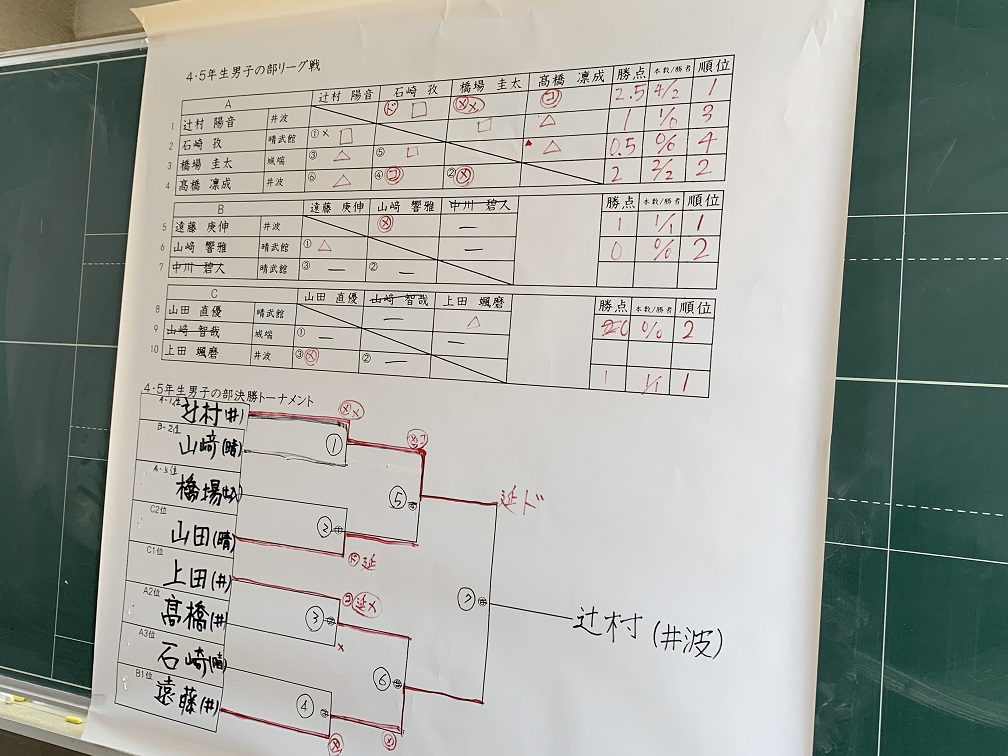 小学4-5年男子 辻村陽音 優勝、遠藤庚申 次勝、上田颯磨 3位、高橋凛成 ベスト8