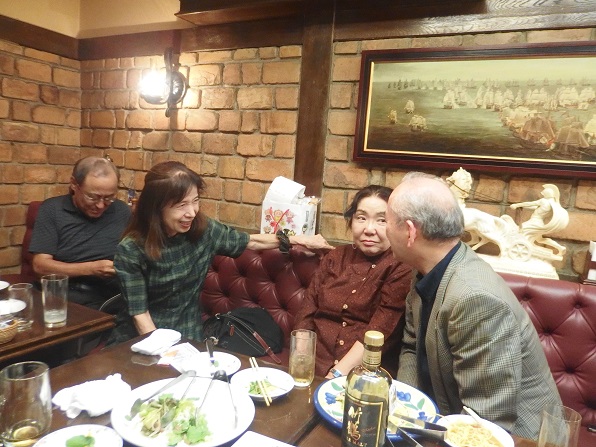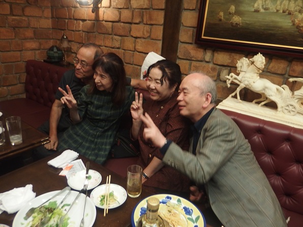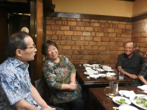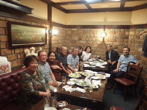 山本武夫が、10月6日鶴見大学で会合があるとの連絡を入れたら、加藤(長原)啓子さんがLineで、呼びかけて関東支部でミニ同窓会を企画されました。おりしも上京中の、松井美智子さんも加わり、夏に五箇山にこれなかった藤野君や竹田君、江田君、吉崎君も集まって、大いに飲んで楽しみました。