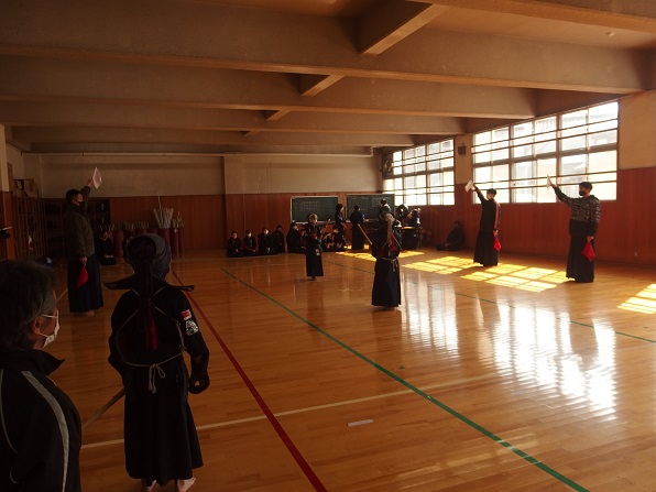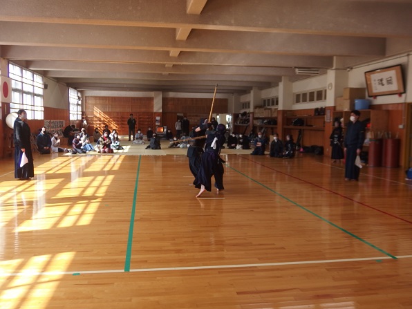 剣道大会の様子 (大会成績) 小学生1部 高橋凛成 優勝、中山皓斗 次勝、小中颯馬・野村晴花 3位 2部 高畠吉生 優勝、高橋佑心 次勝、小西夢翔・武部航 敢闘賞 中学生男子 辻村陽音 優勝、 女子 高橋奏乃 優勝、大谷日葉里 次勝