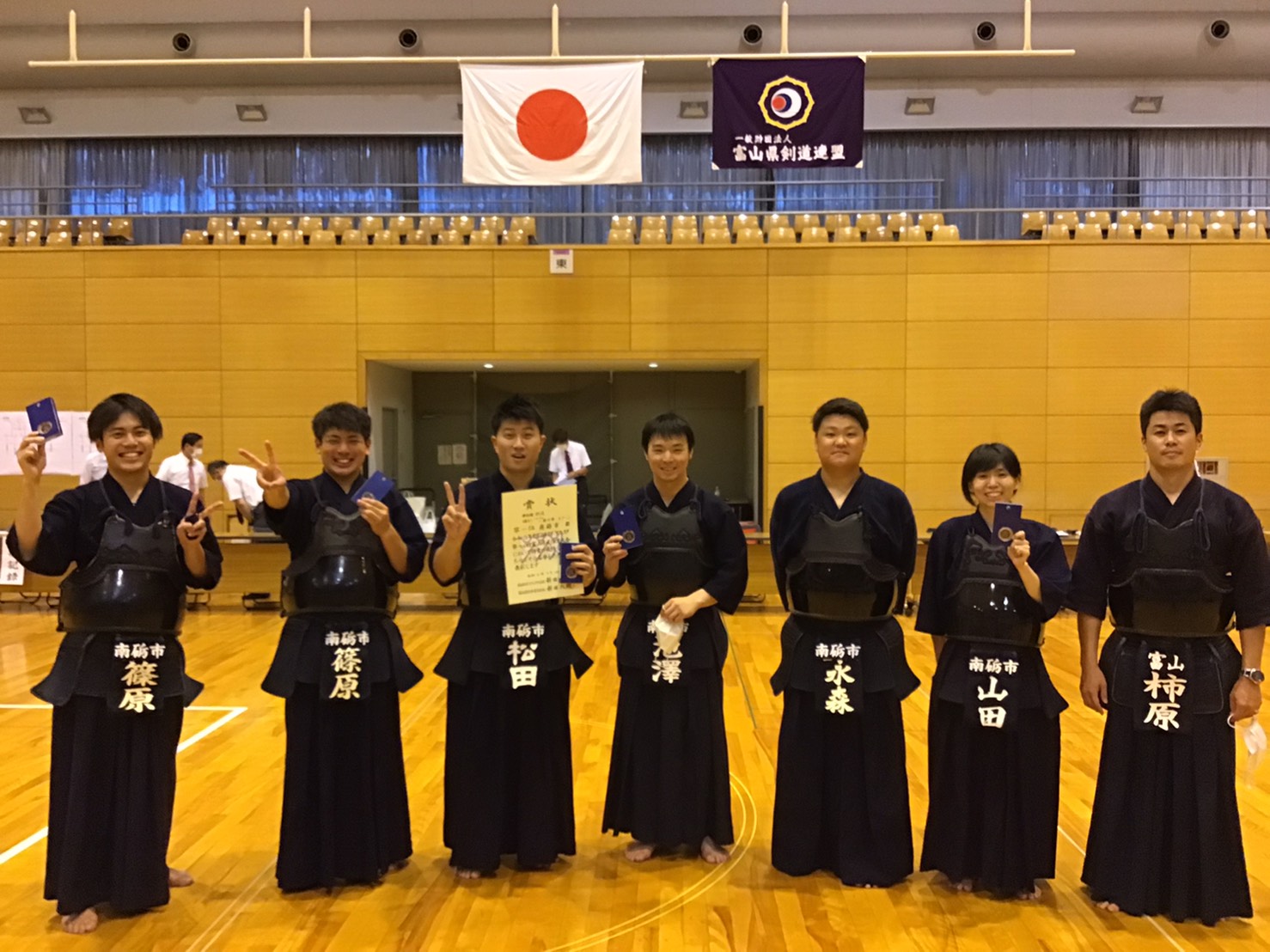 第74回富山県民体育大会(剣道競技;2部) 2021年(令和3年)7月24日 ふくおか総合文化センター 大会成績 中学団体・一般 中学男子 南砺市(辻村陽音・遠藤庚申・高橋凛成・野村立心・水口珂那人) Bゾーン 優勝 中学女子 南砺市(野村晴花・遠藤沙希・大谷日葉里・久恵琴葉・高橋奏乃) Aゾーン 次勝 一般 南砺市(篠原風斗・池澤恭輔【永森駿一】・篠原天馬・山田佳奈恵・松田尚之) Aゾーン 優勝