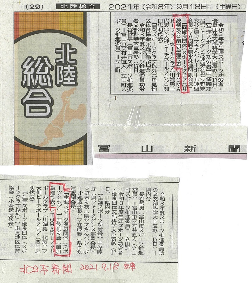 祝!祝!祝!「井波剣友会」令和3年度生涯スポーツ功労者・優良団体文部科学大臣表彰を受賞(9月17日発表)