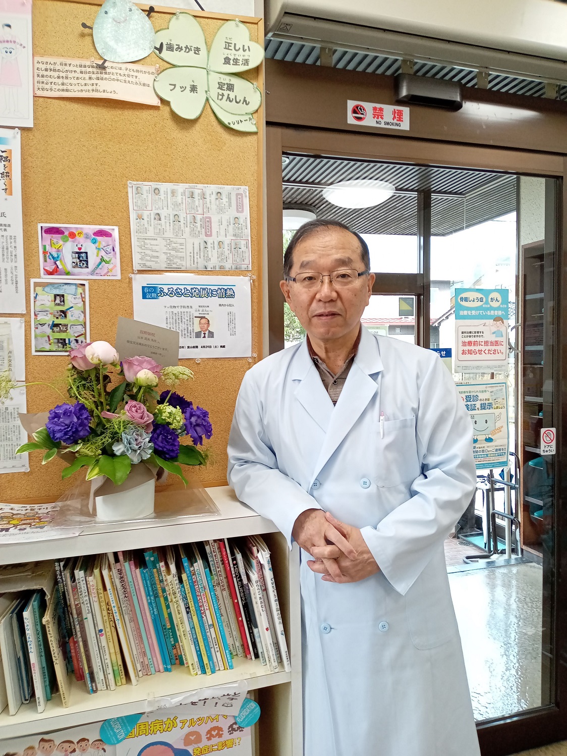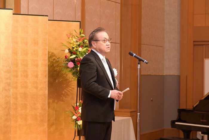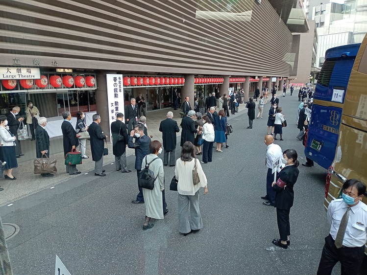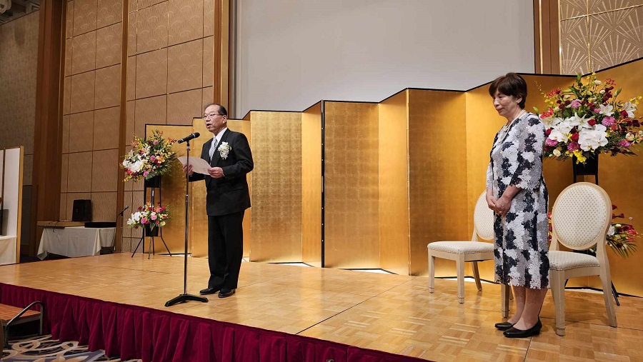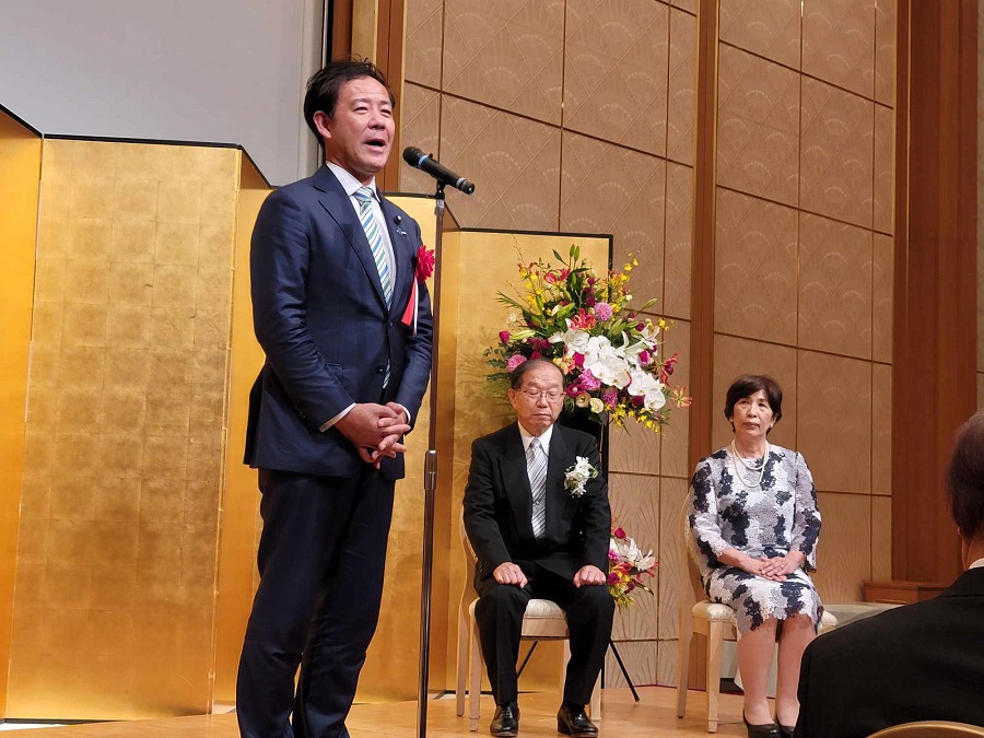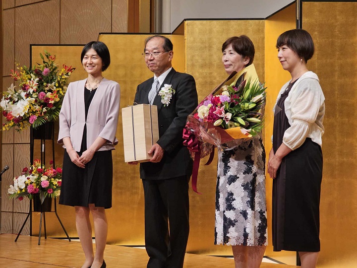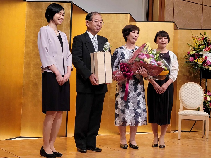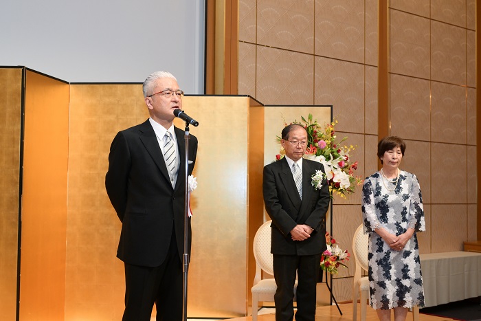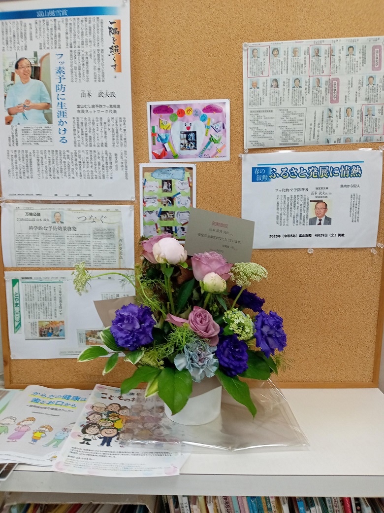 4/29新聞等で発表があり、5/12東京の国立大劇場にて、文部科学省の伝達式がありました。その際、敬愛する古田勲富山大学名誉教授(瑞宝中綬章受章)と偶然一緒になり、お互いに撮影をしあいました。その後、皇居に移動し、天皇陛下の拝謁を頂きました。 9/9、新潟大学歯学部同窓会富山県支部(六華会)と南砺市歯科医師会合同の叙勲祝賀会を、ANAクラウンプラザホテル富山にて、開催して頂きました。