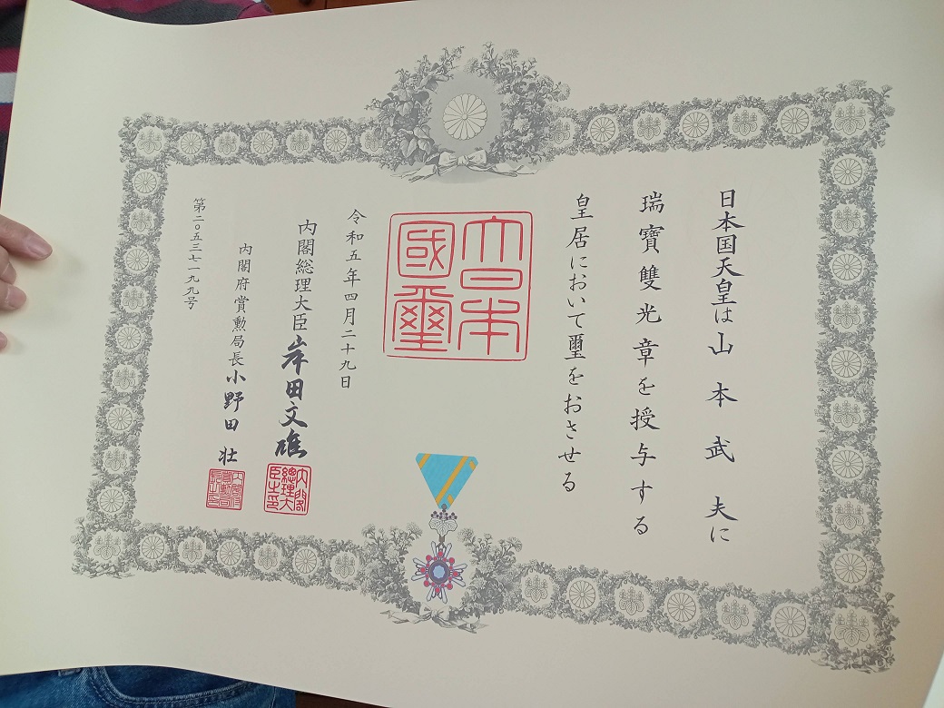 2023年春の叙勲にて、「瑞宝双光章」を受章しました