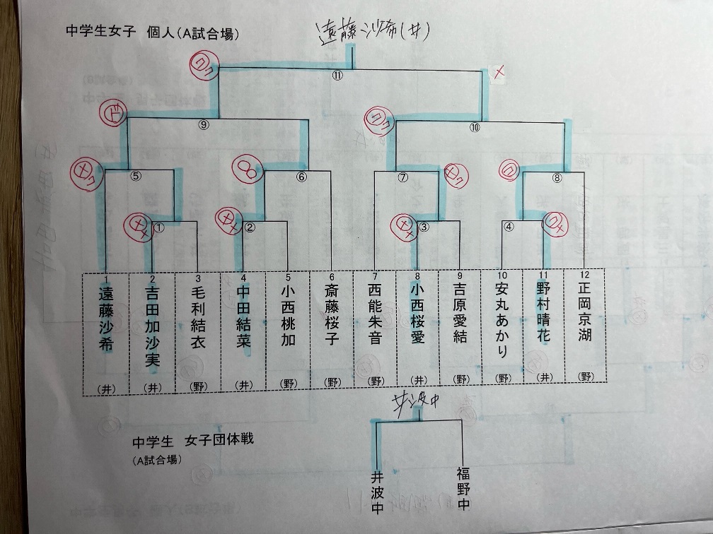 女子個人 遠藤沙希 優勝、小西桜愛 次勝、野村晴花・中田結菜 3位、吉田加沙実 ベスト8(1勝)