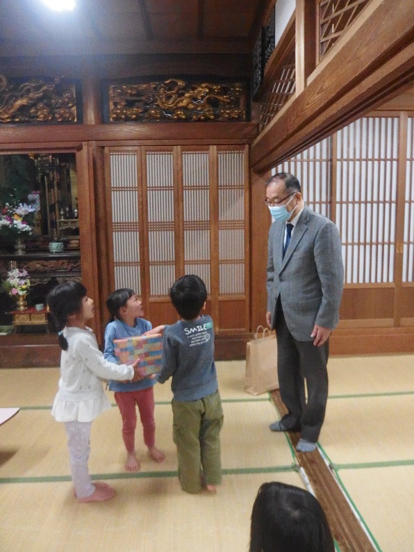 恒例のマーシ園さんには、フッ化物洗口剤と歯ブラシを贈呈し、後からの寺子こどもえんさんの子ども食堂支援のために、カレーを購入しました。