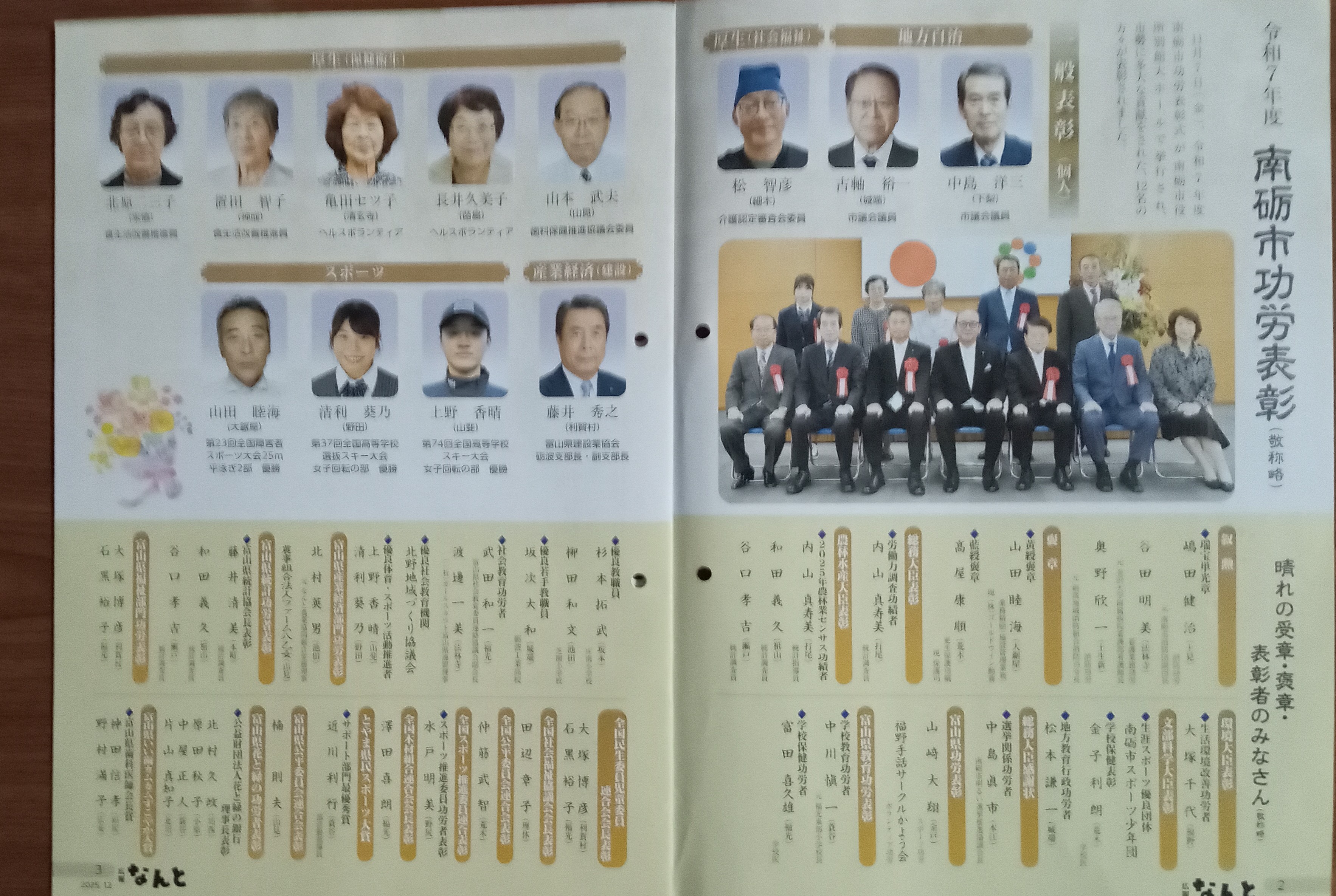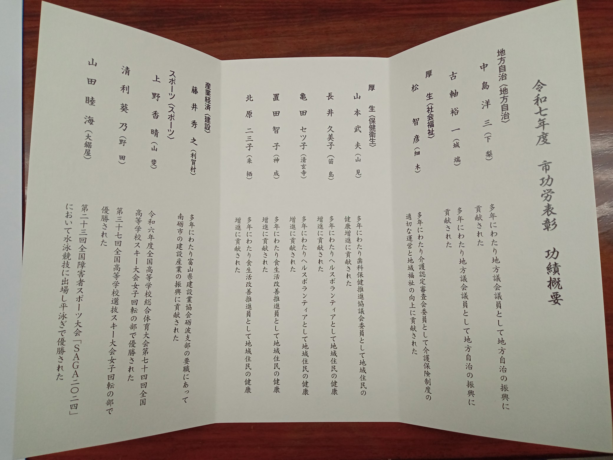 令和7年度、南砺市厚生功労(保健衛生)で表彰を受賞