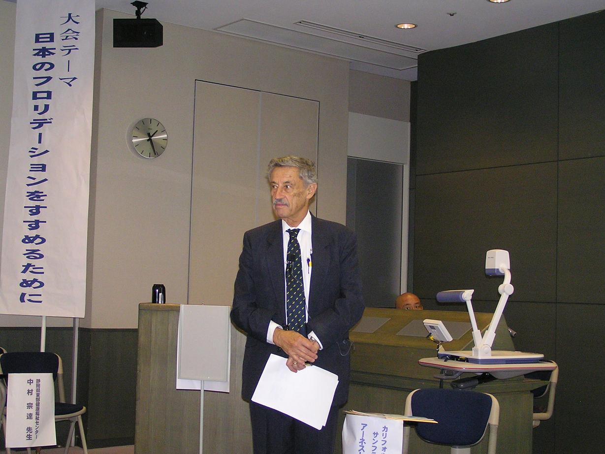 同大会を記念した式典の後の基調講演では、米国・カルフォルニア大学名誉教授のアーネスト・ニューブラン氏が「水道水フロリデーションの歴史、安全性、効能、社会的平等と優れた公共政策面とこれに反対する人たちの分析」で話した。