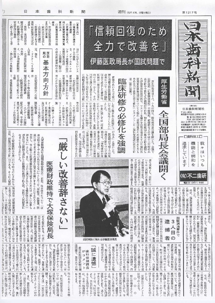 NHKの村田幸子解説委員の放送にあった全国衛生部長会議の,厚生労働省の基本方針の内容が日本歯科新聞(1月23日)に載っていました。ここに、コピーの画像ですが,載せます。