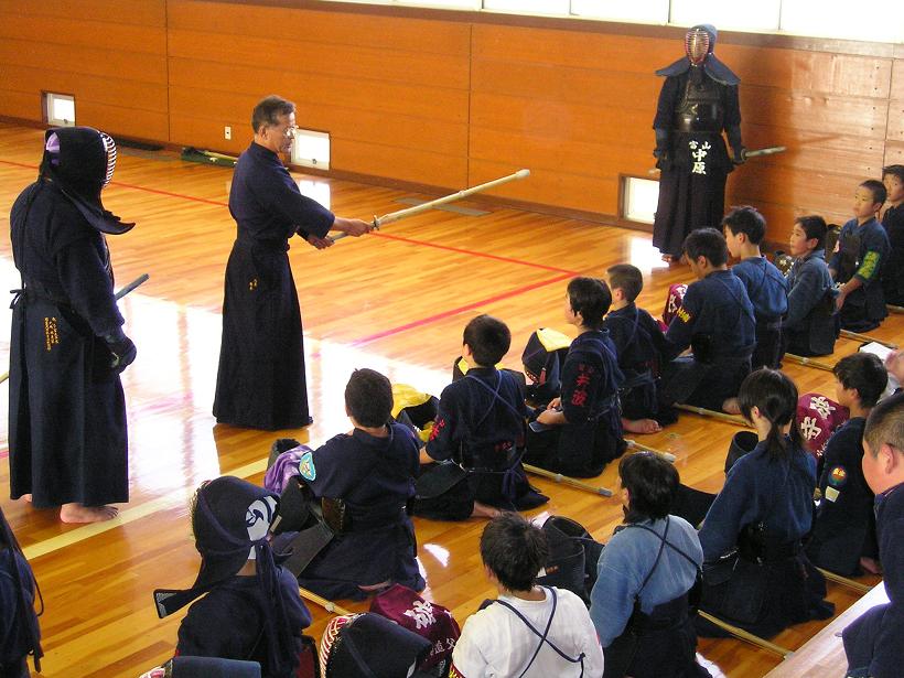 中央から、遠藤先生(宮城)、鈴木先生(兵庫)をお招きして、小中学生への剣道の指導稽古会がありました。平成20年の全中の大会が富山県で開催される関係で、強化の一環で催されました。
