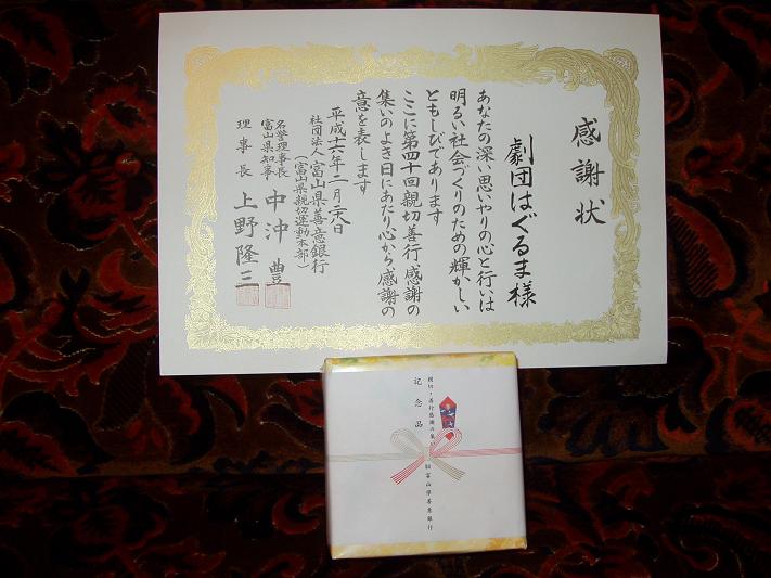 劇団「はぐるま」富山県善意銀行から表彰される!