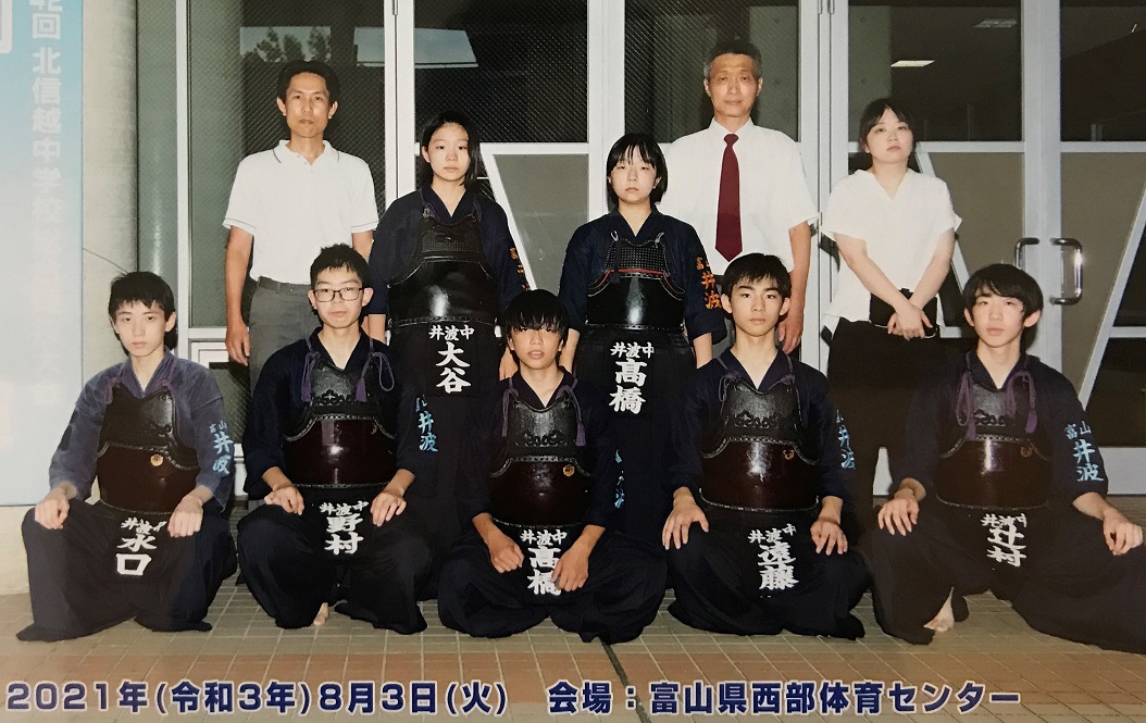 2021年8月2日、第42回北信越中学校総合競技大会 剣道競技(富山県西部体育センター)・・・成績(抜粋) 、集合写真1・集合写真2