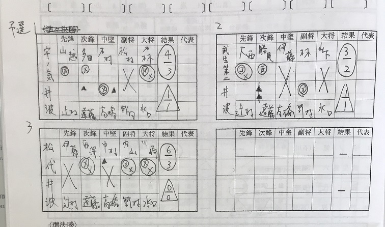 11月28日、少年剣道立山大会(立山町中央体育センター)・・・成績表 個人対戦表