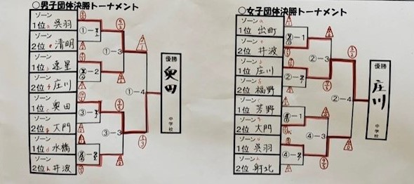 団体:男子の部 1位 井波中、2位 城端中