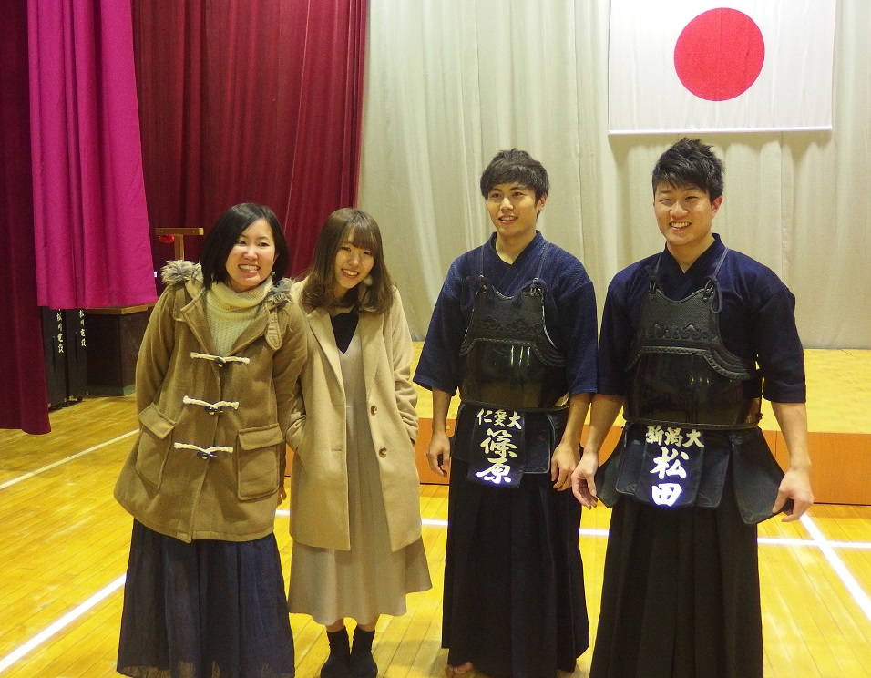 | (管理者コメント)井波剣道スポーツ少年団のホームページ開設のいきさつ(山本武夫) 末娘が、聖徳幼稚園で姉たちと違い、剣道を始めたとき、少々戸惑ったものの、内心応援しようと誓った。 小学校に入り、同級生たちと素振りから始めて、少しづつ成長していった。 昨年の北陸三県の大会で、なんと低学年のチームが優勝と敢闘賞を獲得した。 今年4月に、4年生となり、仲間たちと、これから、いろんな大会で活躍する場面が出てくることを期待したい。 そして、指導する先生方に感謝しつつ、剣道を通じて、人間として成長する過程を見ていきたい。 うちのまーこ(麻紗子・)と一緒に始めた、なおちゃん(尚之)、てんちゃん(天馬)、そして、女の子同士いつもいっしょのちーちゃん(千菜都)の今後の記録簿としたくて、新たにページをつくった。(2004年5月2日) さらに、井波町剣道スポーツ少年団の記録も広げて作るため、このページを改訂した。 平成16年度4年生のページを新たに作った。(2004年10月25日) 平成17年度に入り、小学生A班が新チームとなった。昨年活躍した中村・澤・青山先輩の後に続くことを期待したい。 平成17年度A班のページを新設。(2005年4月30日) 平成18年度は、洲崎貴史君が中学生になり、麻紗子たちがいよいよ小学6年生となった。篠原天馬が主将となり、みんなと力をあわせて頑張ってほしい。(2006年4月8日) 平成19年度は、麻紗子たちは井波中学校に入学。いよいよ、来年に富山で全中が開催される。指導者に、新しく斉藤洋文先生を迎え、男女ともに今年は全中出場を目指す。(2007年4月15日) 平成20年度は、麻紗子たち中2になり、8月全中が砺波市で開催される。男子は2年連続、女子は3年ぶりに出場を目指す。(2008年4月2日) 平成21年度は、いよいよ麻紗子たちは中学3年に。部活も残り、半年になる。熊本全中目指して、男女とも頑張れ。(2009年4月25日) 平成22年度は、麻紗子世代は、高校入学し、それぞれの道を歩む事になった。松田尚之は、偉大な寺島先輩を目標に富山東に、篠原天馬は、地元南砺福野に、山田千菜都と麻紗子は、二人そろって富山北部に進学、それぞれの高校で新たに剣道仲間を作り、インターハイを目指せ!(2010年4月8日) 平成23年度は、麻紗子たちは、高校2年。松田尚之は、心機一転、今年に賭ける。篠原天馬は、砺波地区を引っ張り、上を目指す。千菜都と麻紗子は、インターハイ常連校の中心で、今年も頑張る(2011年4月1日) 平成24年度は、麻紗子たちは、高校3年、最後の年。泣いても笑っても、あと半年の高校剣道時代。松田尚之は富山東、篠原天馬は南砺福野を引っ張り、ベスト4以上を目指す。千菜都と麻紗子は、油断大敵のみ、富山北部を今年も新潟インターハイ出場へ導けるか(2012年4月1日) 参考・・・富山北部高校剣道部・・・富山北部卒業 平成25年度は、麻紗子たちは大学進学(4月1日現在) 後輩たちの記録を記載。 ![]() 久し振りに高田先生と4人で・・・(12月31日ー1月1日年越し稽古で再会) 平成26年度は、麻紗子たちは、大学2年生そして、成人式、スポ少後輩たちの記録を掲載。 平成27年度は、麻紗子たちは、大学3年生、それぞれ部活の中心に!スポ少後輩たちの記録掲載。 平成28年度は、麻紗子たちは、いよいよ大学4年の最終学年!スポ少後輩たちの記録 今後(平成29年度以降)は、井波スポ少後輩たちの記録掲載。 2016-17年年越し稽古(学生最後) |