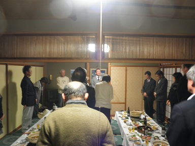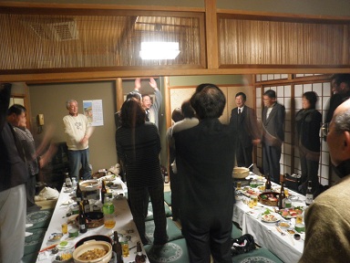 ![]() 当日は、隣の大宴会場で、消防第3分団(南山見地区)の宴会があり、そこに参加していた3人が加わった写真が、このページ最初の写真。 |