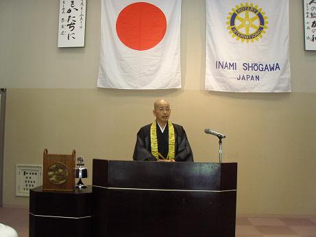 私のお寺は、変わった寺です。ロータリークラブは奉仕活動をしておられますが、仏の世界では、布施行・菩薩行です。なくなった方の遺族から「永代詞堂経」として頂いたお金を、これからの子供のために使わせていただいています。「寺子屋親子自然教室」は20名の定員で始めましたが、今では97名の登録があります。子供達に体験させてやりたいが、親が経験したことがないというので、是非この教室で教えてほしいという声が多く、断れません。