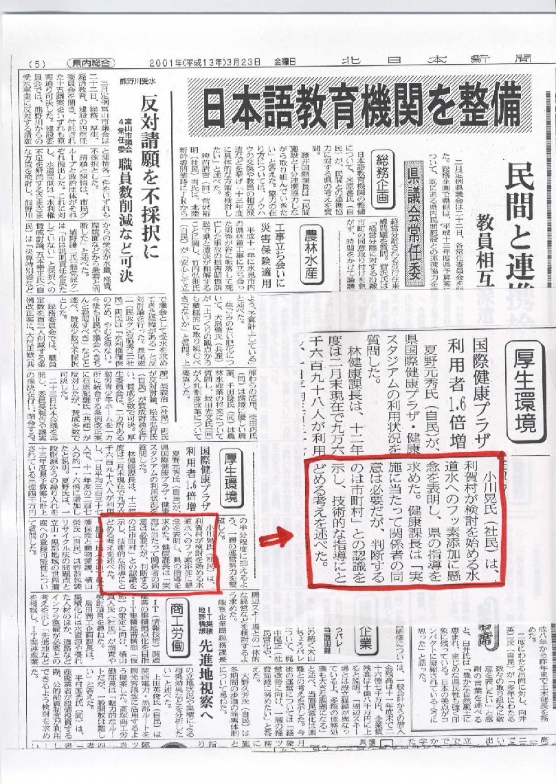 (2001年3月23日 金曜日 北日本新聞掲載記事より)