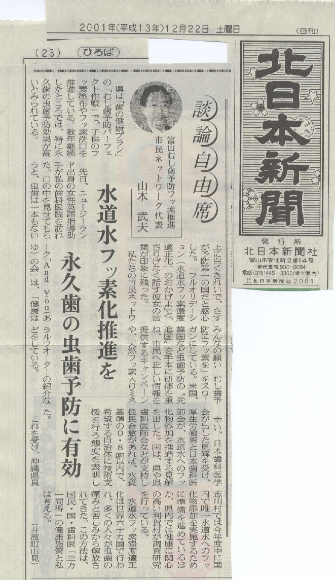 富山むし歯予防フッ素推進市民ネットワーク 代表 山本武夫