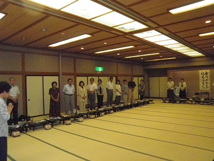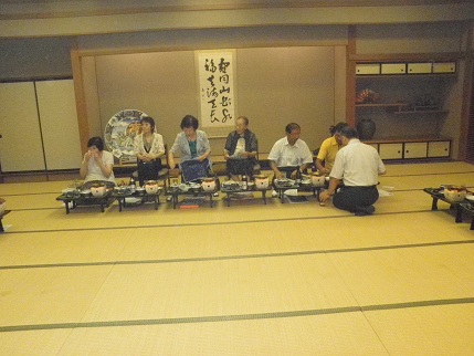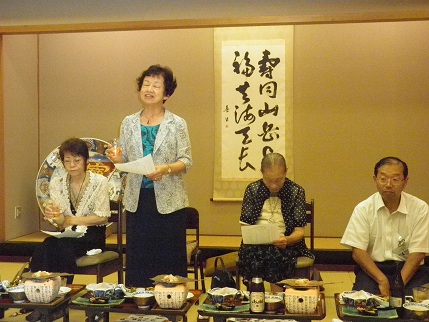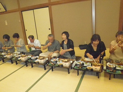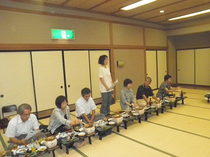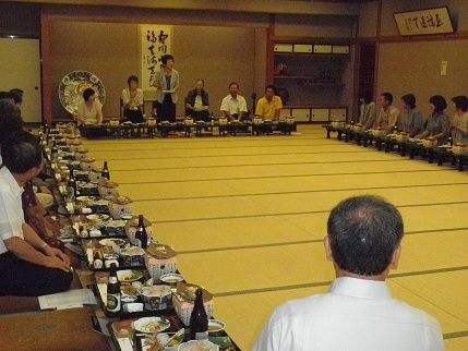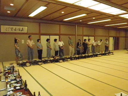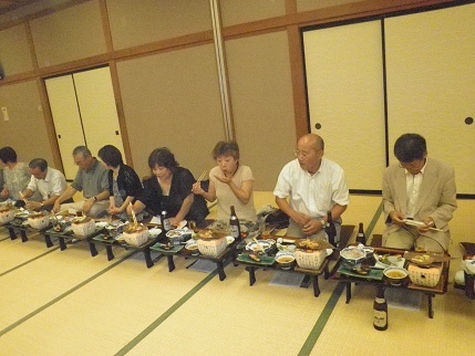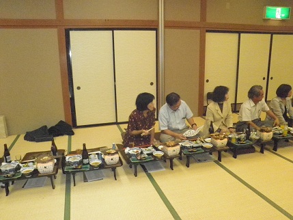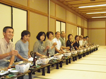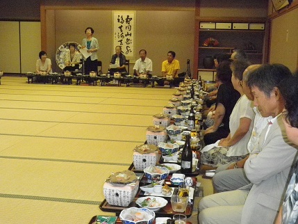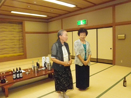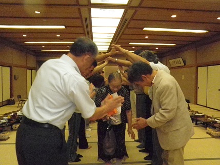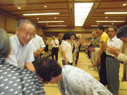 木彫りの里での、楽しい懇親会も、万歳三唱でお開きとなり ました。堀先生、菊賀先生、いつまでも、お元気で。 2次会の「華祥」も大勢参加して、小学校校歌を口火に、 懐かしい歌のオンパレードとなりました。 |
